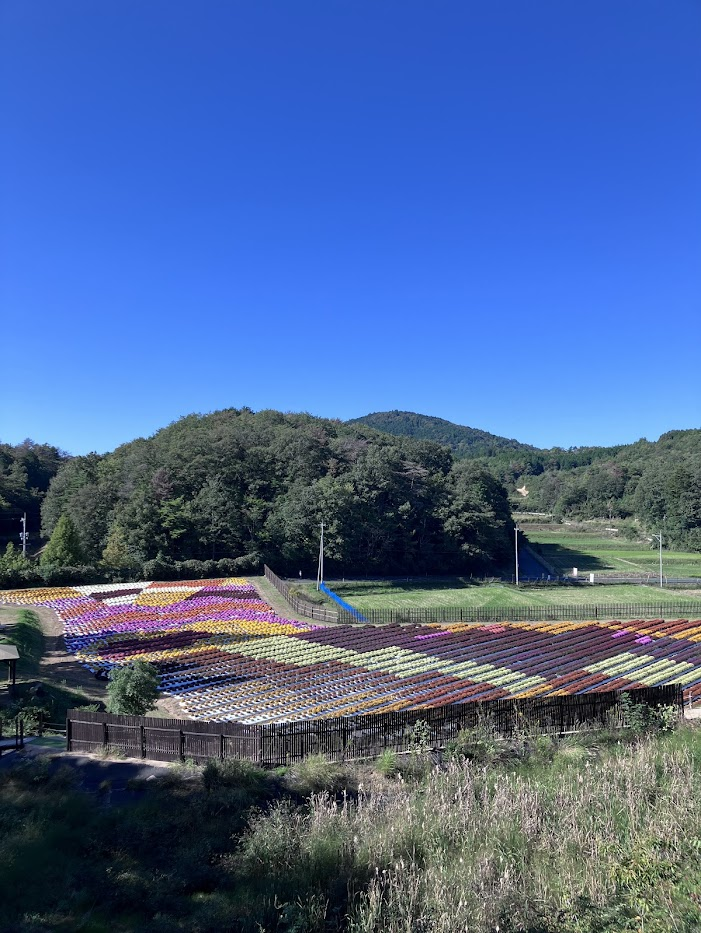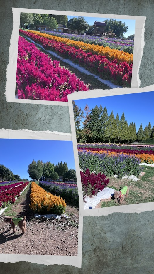 世羅高原農場 愛犬とお出かけ X Facebook はてブ LINE Pinterest コピー 2025.10.11 秋はお出かけの季節!世羅郡にある世羅高原農場(@sera)へ! 約2時間のドライブで、到着!綺麗な秋空! 入口の目の前が駐車場。駐車場から歩かなくてもいいのは嬉しい! 入口ゲートをくくるとすぐにお花畑と、木々の緑と、土の香り!秋空と相まって本当に心が晴れる美しさ。 皆さん、食べてました。せらバーガー。いい匂いがしてたぁーー! 「ダリアとガーデンマム祭」を開催中。花の群れを目の当たりにすると「うわー!綺麗!すごい!」と声が出ます! コスモスの道をランランと歩く愛犬💖 ケイトウの花畑。写真の100倍、キレイだよ! ダリアの種類が多くて多くて、ただただ感動&驚き! とにかく色彩がすごい!それぞれの花が一生懸命咲き誇ってます! 遅めのお昼。持参のサンドイッチで休憩。愛犬は、持参のサツマイモ。食べた後、ノンビリしてると何か視線を感じる。うちの子が「まだ行きませんか?」の顔で見てました💖 逆光だったから、お花の綺麗さが分かんないのが残念!一眼レフ?プロ並みのカメラで撮ってる人がたくさんいたよ! 展望台も設置され、高台から見れます!有難い(^^♪ リードの真ん中あたりにトンボが止まってるの見える?このトンボ、愛犬の鼻先や頭にとまって、愛犬で遊んでたよwww。愛犬は「いやー!」って感じで可愛かった💖 世羅産の果物も食べれます!ジュースはなぜか瓶のみwww おやつタイム。お昼で残ったサツマイモを完食。今日一番、目が輝いてるwww美味しいの食べれて嬉しいね💖 おやつの後は、まったりタイム。涼しい風が吹く中、私はスマホで写真整理。愛犬は、人と自然の観察。だんだん眠くなってくる愛犬が可愛い💛 約3時間、しっかり自然を満喫!帰りの車で、即おねむ。可愛いなーー( *´艸`) ダリアもマムも、とても可愛く美しく、鮮やかな緑も目の保養になりました!愛犬、また来ようね(V)o¥o(V)