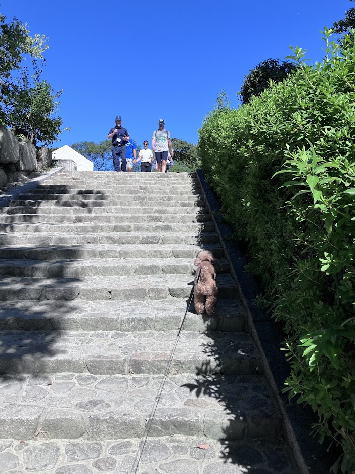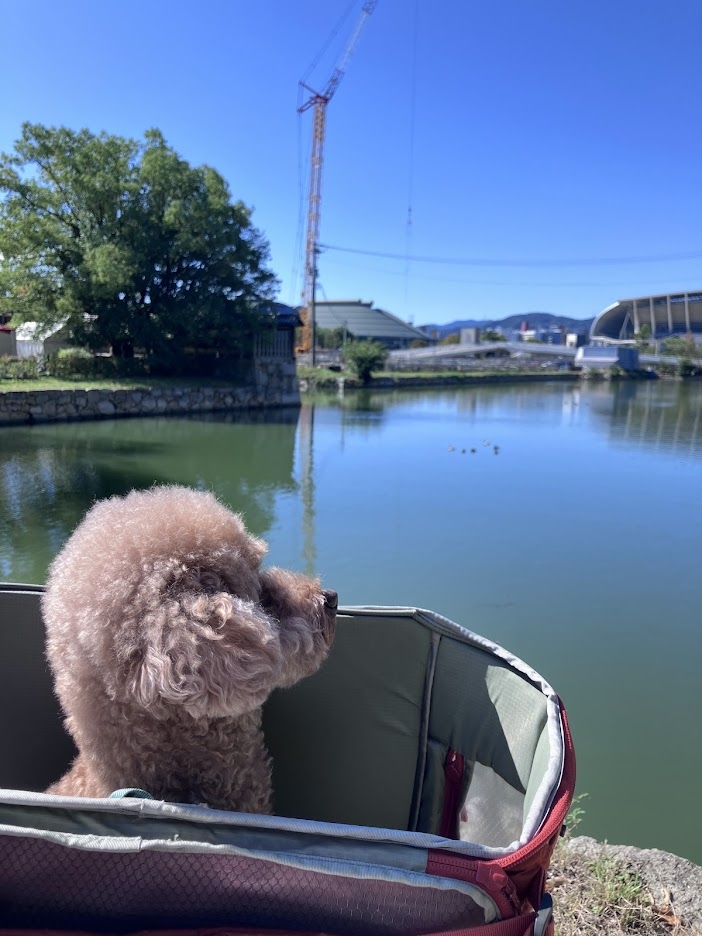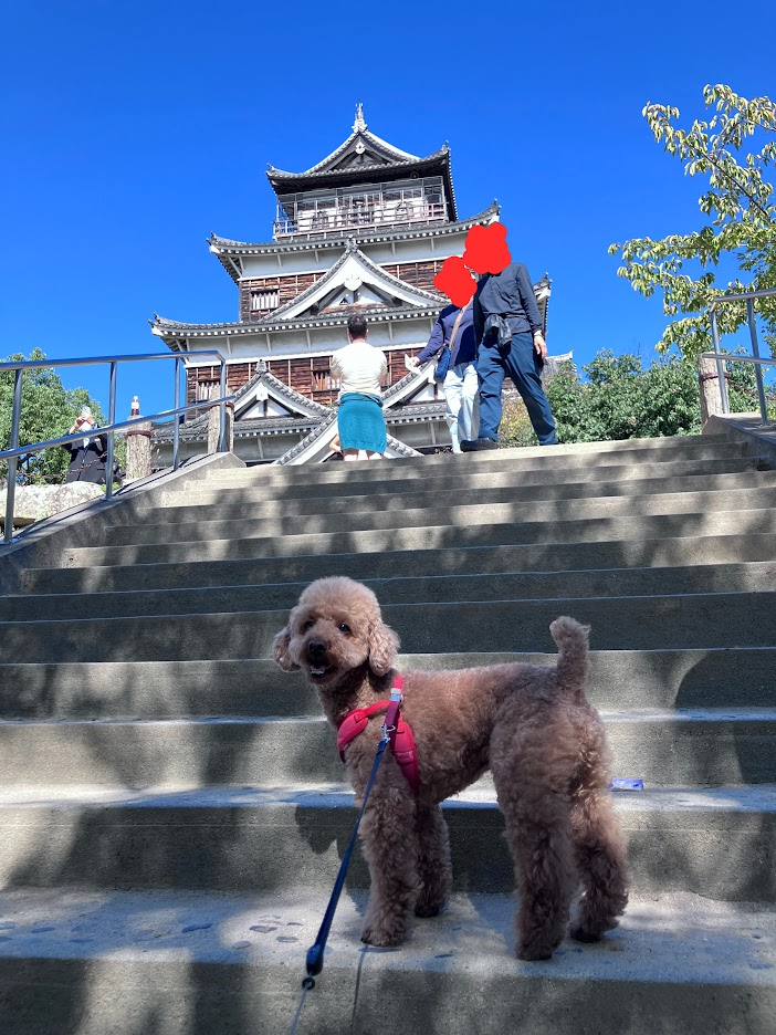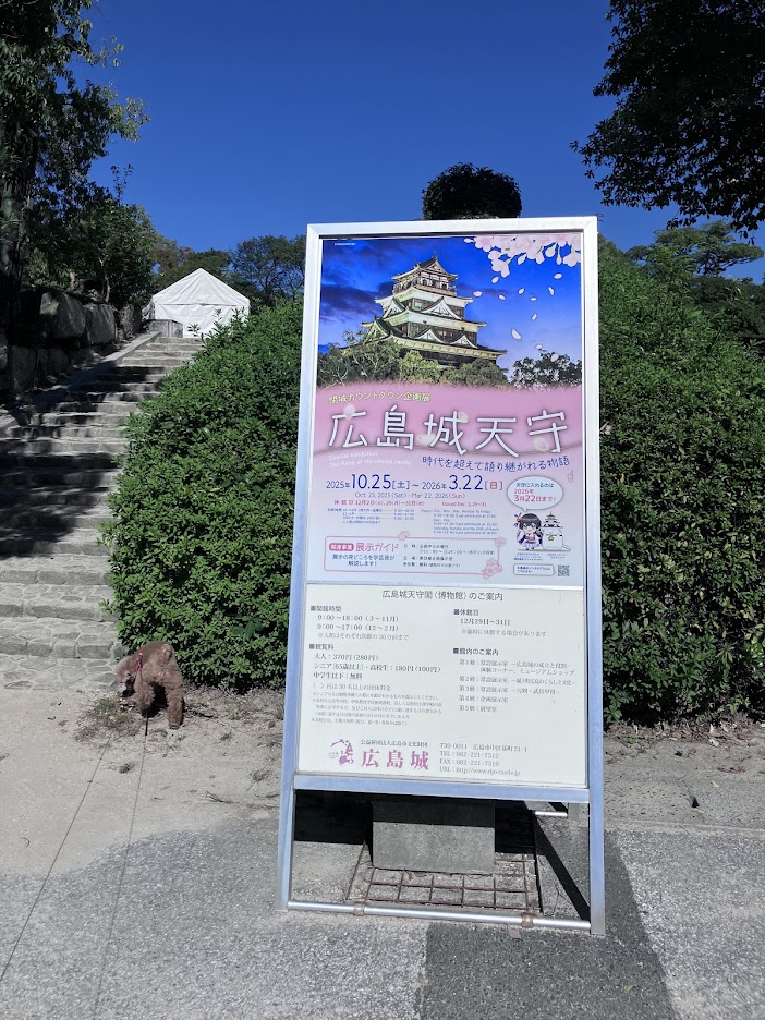 広島城 愛犬とお出かけ X Facebook はてブ LINE Pinterest コピー 2025.10.25 久しぶりに広島城へお散歩。秋晴れで超気持ちよかった! 今日も観光客で賑わう。その先にお城が見えてきました。 綺麗なお空、綺麗なお城、可愛いワンコ。最高や💖 お城から見えるピースウイング広島。 キャリーバッグに入ればワンコも城内OK。もちろん無料💖 狭い通路&急な階段多いから、ワンコ抱えて歩くのは結構大変よwww 広島城は、裏道?お堀の周りの道?も結構楽しいのよ。 楽しくて、お尻もプリプリしちゃいます💛 広島護国神社。七五三のご家族で賑わってました。 そして、サツマイモのおやつタイム。涼しそうな場所に座って「あーーん」からの「パクッ」。かーわーいーいー💖 愛犬を満足させたあとは、私のおやつ。ローソンで買ったバナナ。しっかり果肉に、さらりとした甘みで上品なお味でございました。私がノンビリしてると「まだ行かないのか?」の犬圧が始まります。近くからガンミ→ジリジリ遠くへ移動作戦が始まるwww 毎年行われるフードフェスティバル。今年はヒロパまで広がって行われるから、すごい人になりそう!! 恒例の菊花展も行われます。威厳を感じる菊を見ると感動するよ! お堀のカモちゃん達、鯉ちゃん達は相変わらずノンビリです。 こんな素敵なお城にいつでも入れるなんて本当に有難い。これからの紅葉が楽しみや💖