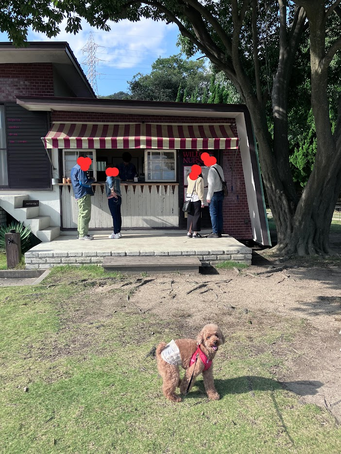 カントリーっぽい可愛いお店。外で食べるのみなので窓から注文。犬連れにとっては有難いシステム。