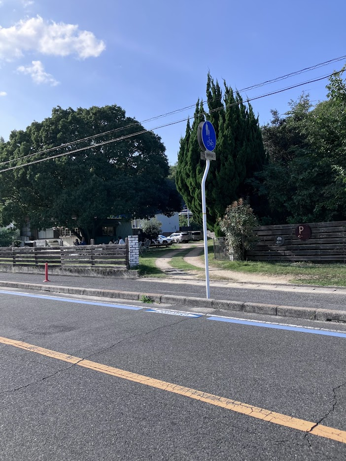 駐車場は敷地内にあるよ。路肩との段差がない所が、写真右側の方にあるから、そこから入ってね。