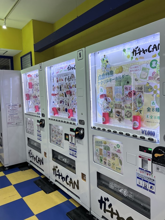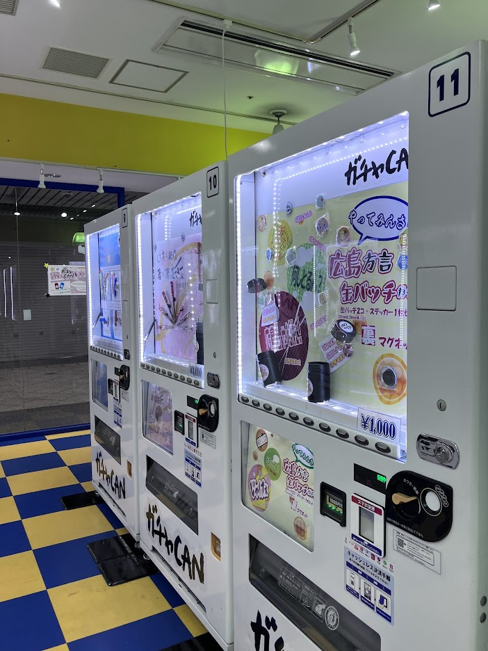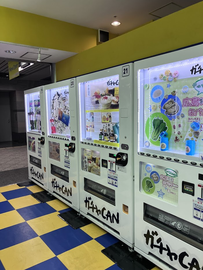 自販機BASE 日々の事 X Facebook はてブ LINE Pinterest コピー 2025.11.21 紙屋町シャレオに、こんなお店が。よくあるガチャ専門店?と思ったら、広島の特産品のみのガチャ店!1回1000円。修学旅行や観光のお土産には丁度いい金額だねヾ(≧▽≦)ノ カキとか・・・・ 方言とか・・・ お醤油とか・・・