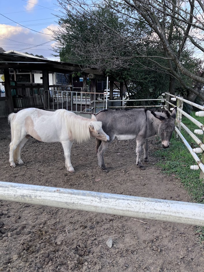 白ポニーがグレーポニーの足を噛んでチョッカイ出して楽しそうに遊んでた。「ほらほら、噛むぞぉ(‘Д’)」「やめろよー( ノД`)」みたいなのが暫く続いたwww