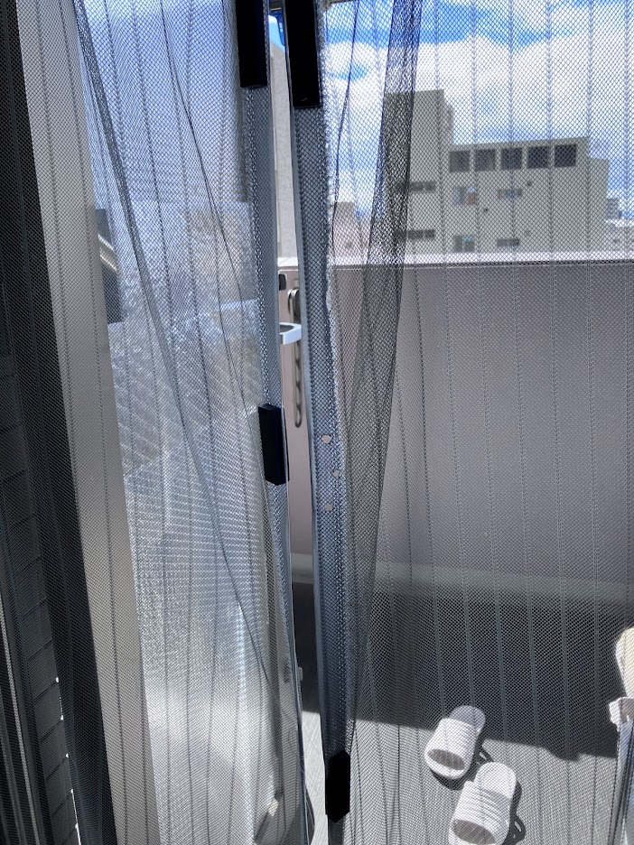 が、ソロソロ限界が・・・。カーテン網戸も色々だが、マグネット開閉できるこの商品が使いやすい。