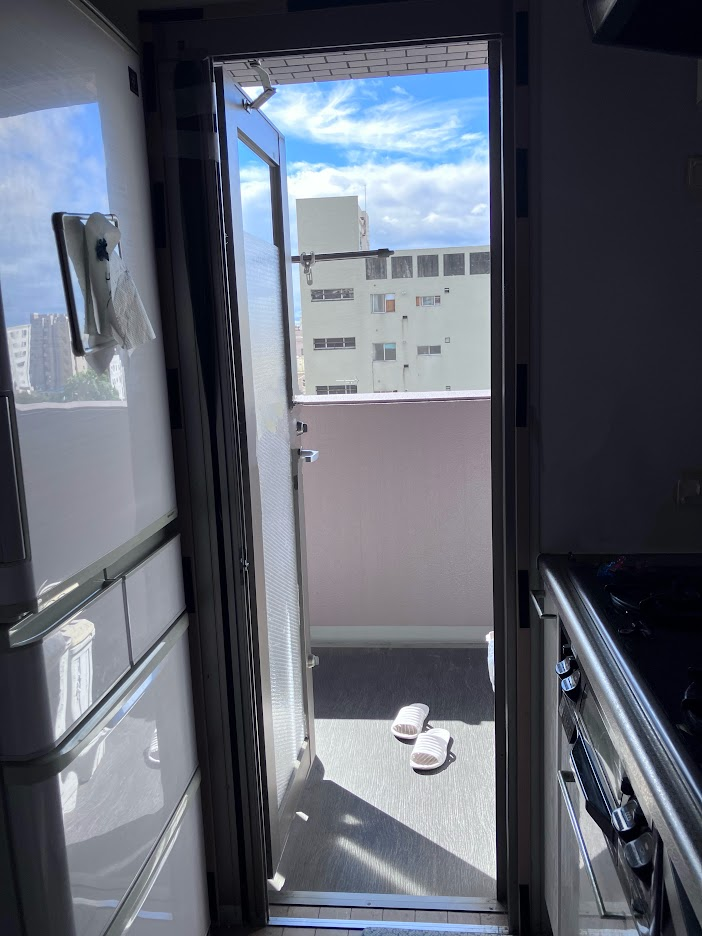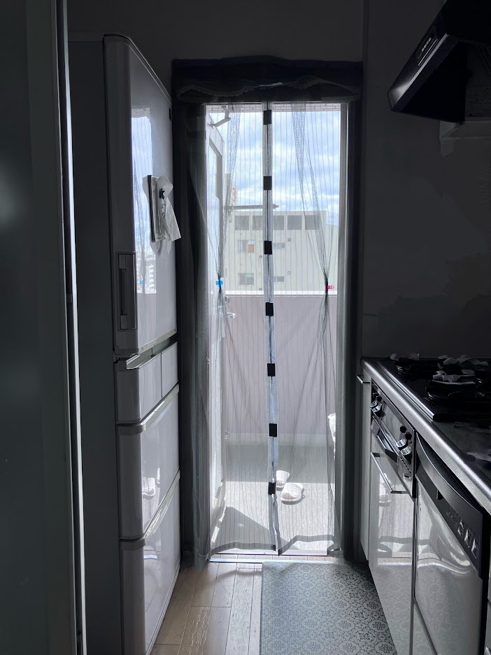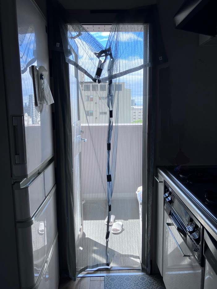 勝手口の、アコーデオンカーテン網戸が壊れたため、2年前からこの網戸を設置。