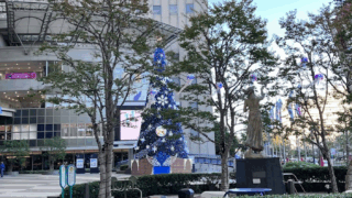 「基町クレドふれあい広場」のクリスマスツリーが完成。朝からキラキラしてます(^_-)-☆